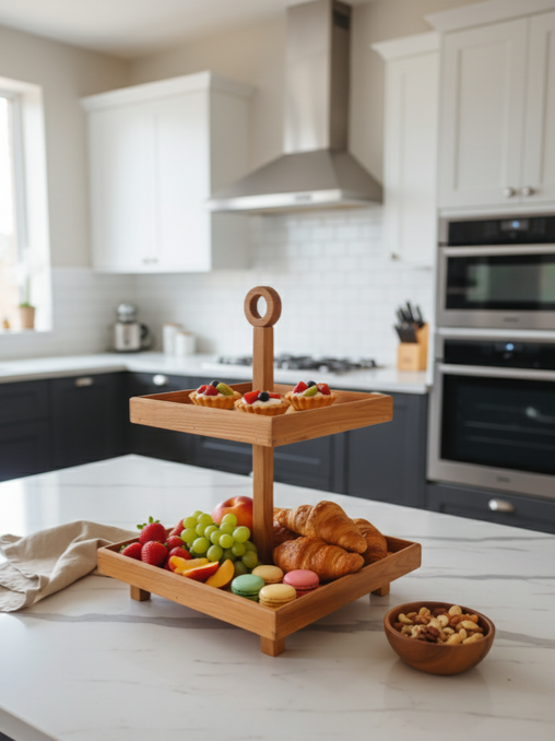 جا میوه خوری و جا شیرینی خوری مربع چوبی دو طبقه