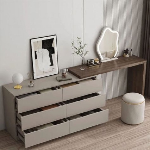 این میز آرایش و دراور،با تلفیقی مناسب به هم متصل شده اند و تماما از جنس ام دی اف درجه یک می باشند و به هیچ عنوان نئوپان و ملامین نمی باشد.رنگ بندی به این صورت هستش که رنگ طوسی میز آرایش ثابت می ماند و دراور قابل تغییر رنگ میباشد.رنگ طوسی میز آرایش نیز طوسی تیره مایل به مشکی می باشد.